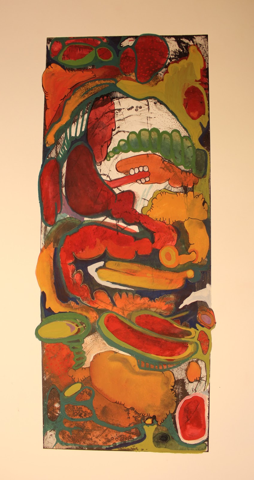 Digestion. Waterless Litho with watercolor, gouache and ink. 2013. 15" x6"